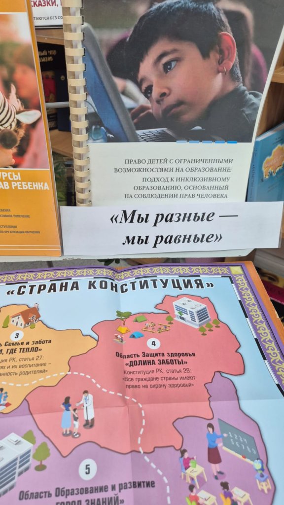 "Адам құқықтары жөніндегі әдебиет" кітап көрмесі балалардың заңға деген құрметіне, төзімділікке және өз іс-әрекеттері үшін жауапты бола алуына тәрбиелеуге елеулі үлес қосты.